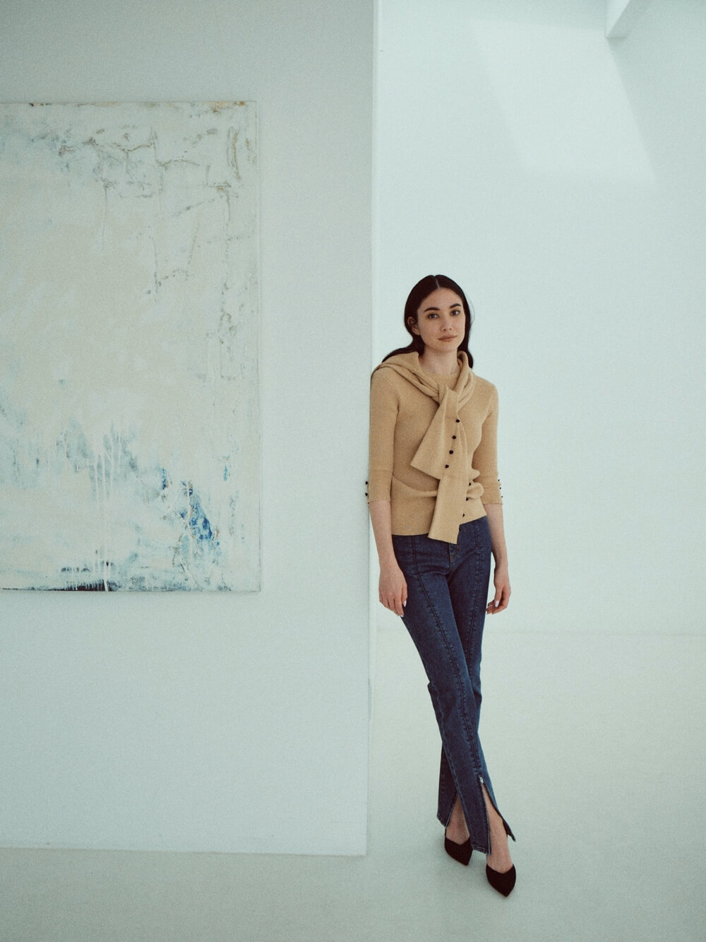 フェミニティ香るスカートに合わせれば抜け感に、いつものデニムに合わせればスタイルに品をプラスしてくれるニットシリーズ。袖にあしらった飾りボタンは、大人の遊び心を表現します。また、ツインニットとして着るのもおすすめです。その日の気分とアイディアによってさまざまに表情を変える、大人にこそ楽しんでほしいアイテムです。