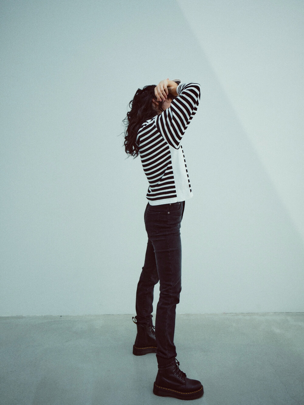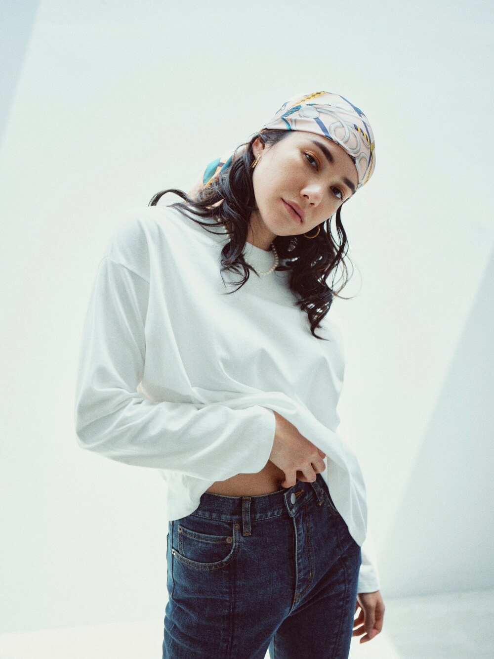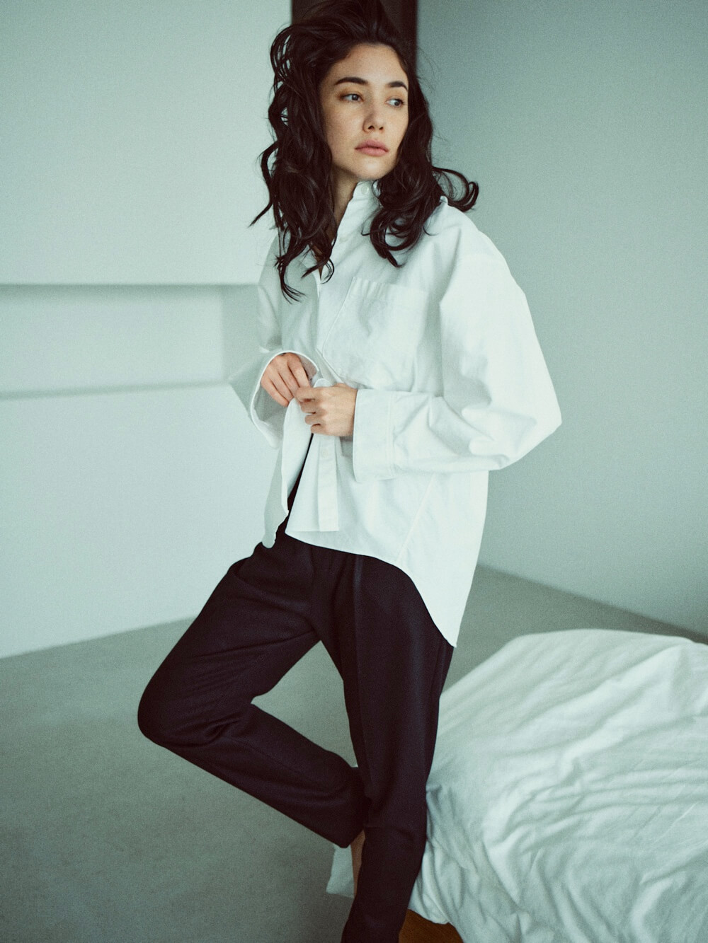 シンプルなホワイトカットソーは、その人自身の魅力を引き立ててくれる、まさにオーセンティックなアイテム。だからこそ、上質なオーガニックコットンとリサイクルコットンを半分ずつ使い、立体的なシルエットにもこだわり抜きました。一枚で着るのはもちろんのこと、上にアイテムをレイヤードした際もすっきり着こなしていただけます。
