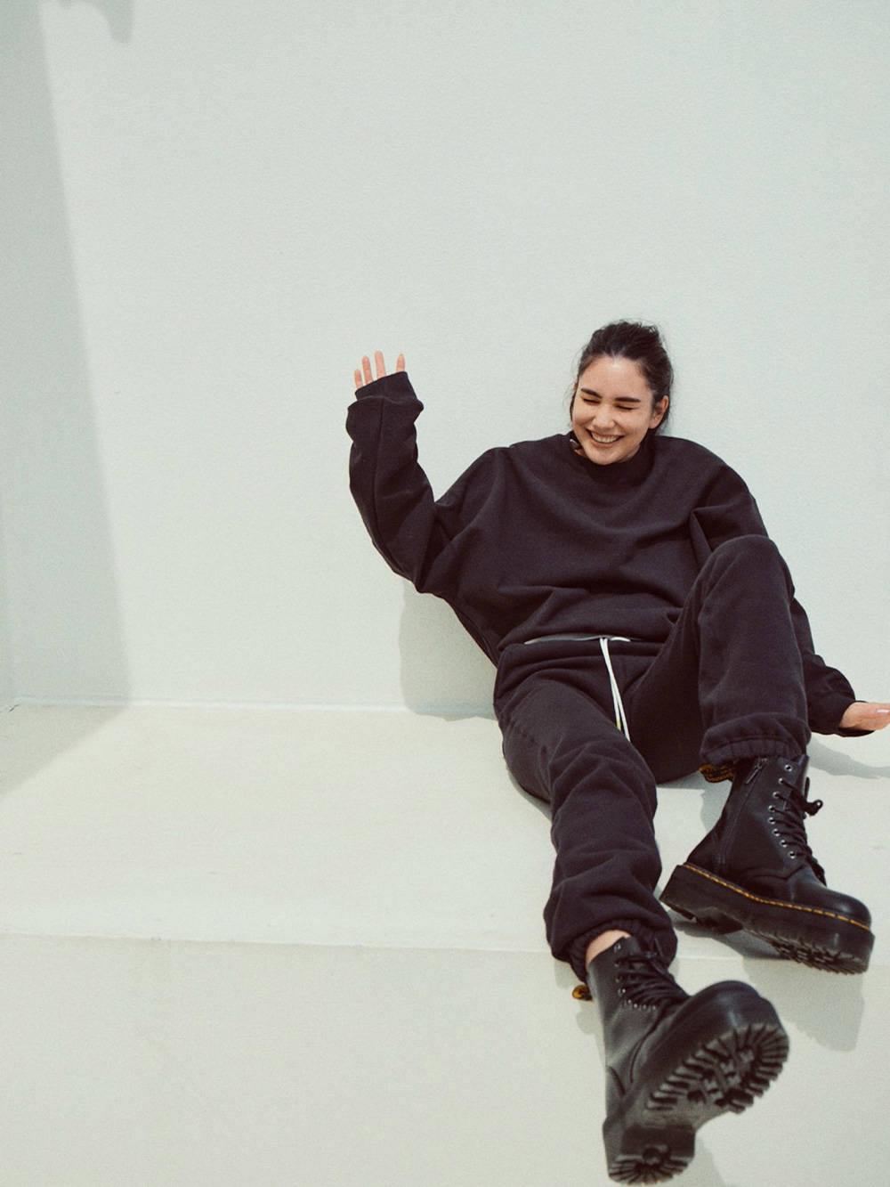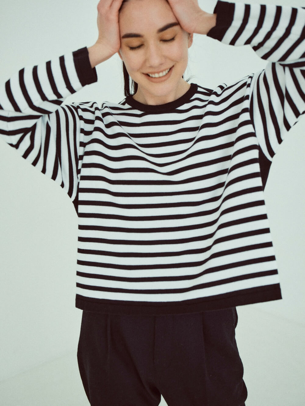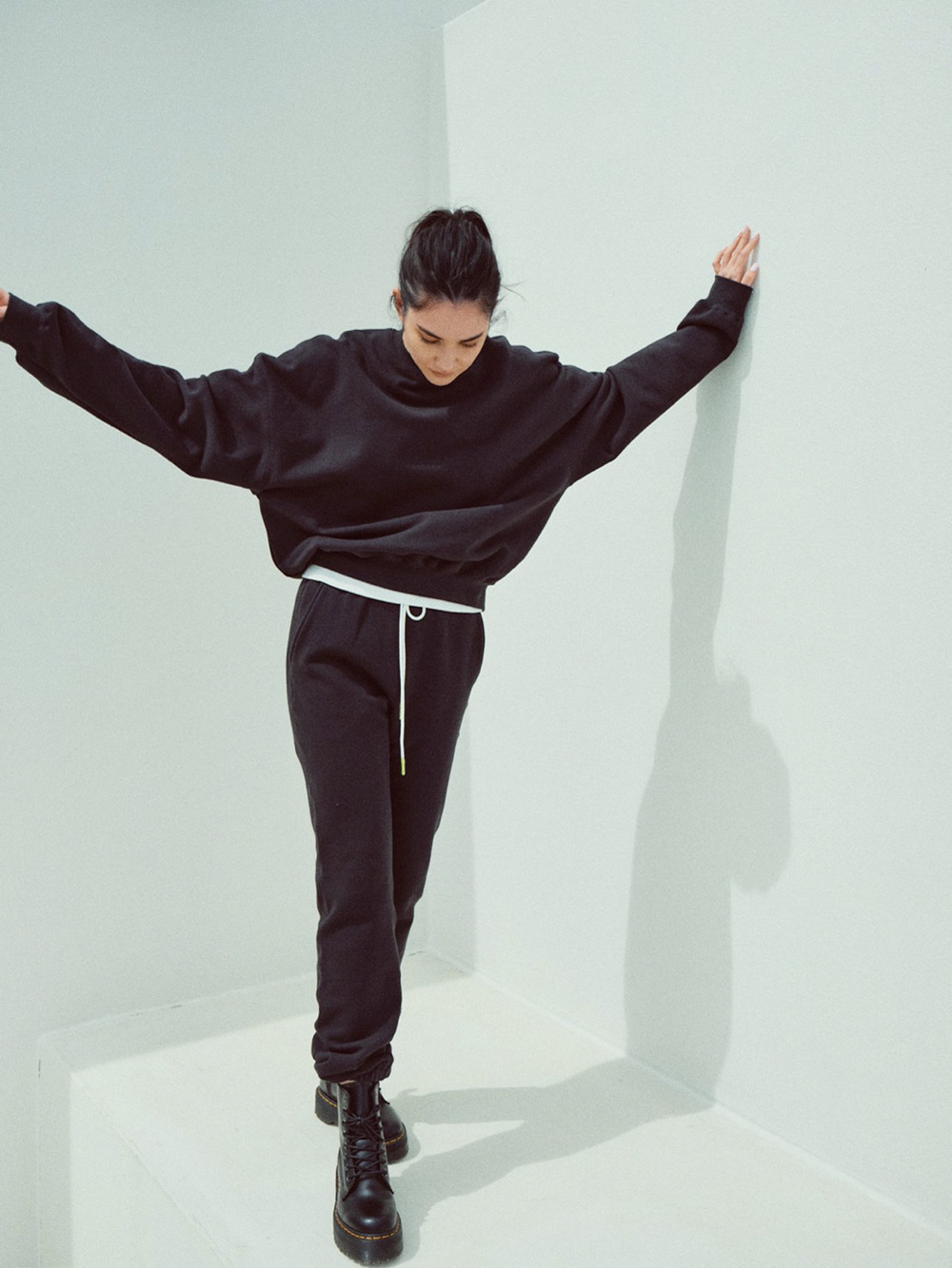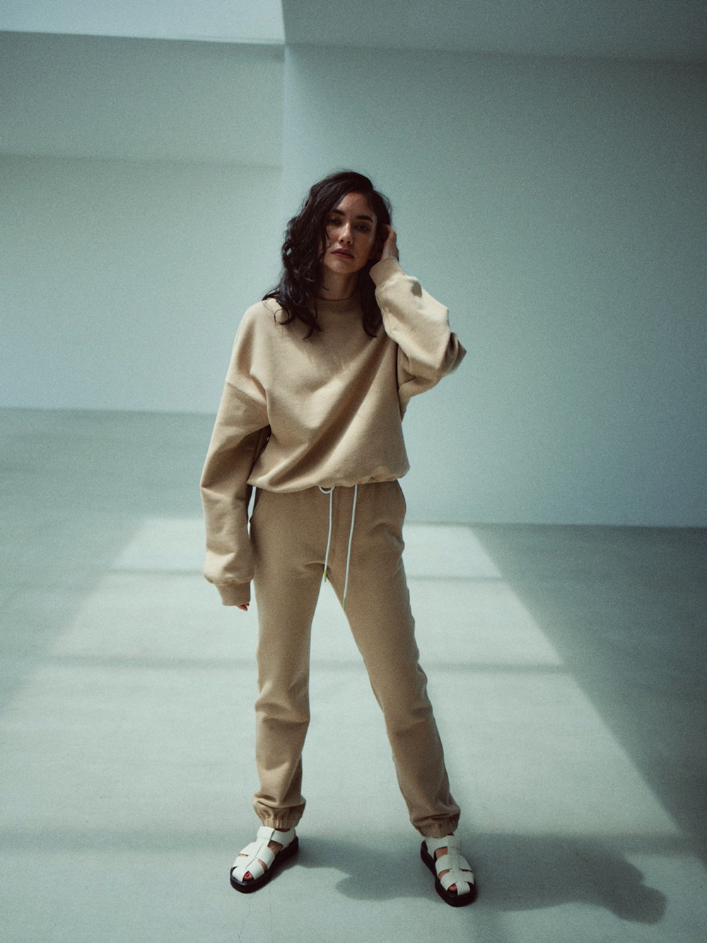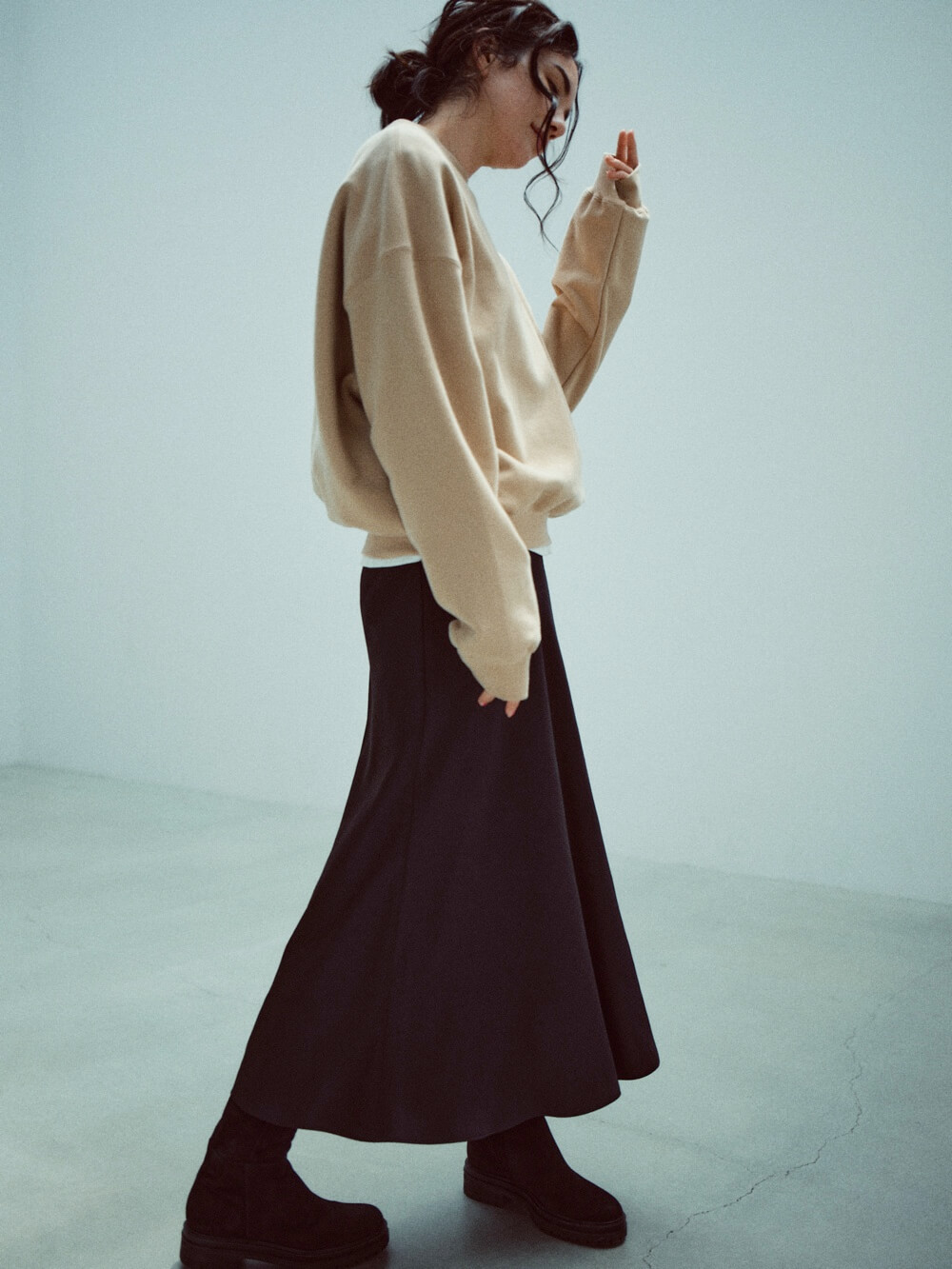 こだわったのはシルエットの美しさ。スウェットシャツはシンプルながら、オーバーサイズのディテールを取り入れることで、レイドバックなムードに。パンツはヒップ周りにゆとりを持たせつつ、余分なもたつきは抑えて、脚がすっきりと長く見える仕様に。歳を重ねても様になるから、共に年齢を重ねていくことが楽しみになるスウェットです。