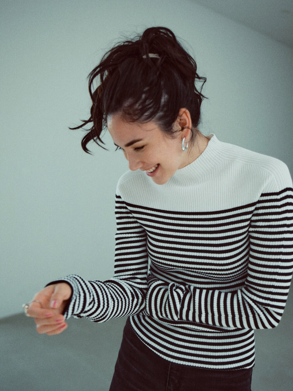 クローゼットに欠かせないアイテムの一つが、コットンのハイゲージニット。エレガントにも、カジュアルにも。一枚で着ても様になる。シーズンもシーンも選ばずに使えるアイテムは、日々忙しく過ごす女性の味方です。オーガニックコットンを100%使った柔らかな肌ざわりで、ピタピタしすぎず素肌に着てもストレスがありません。