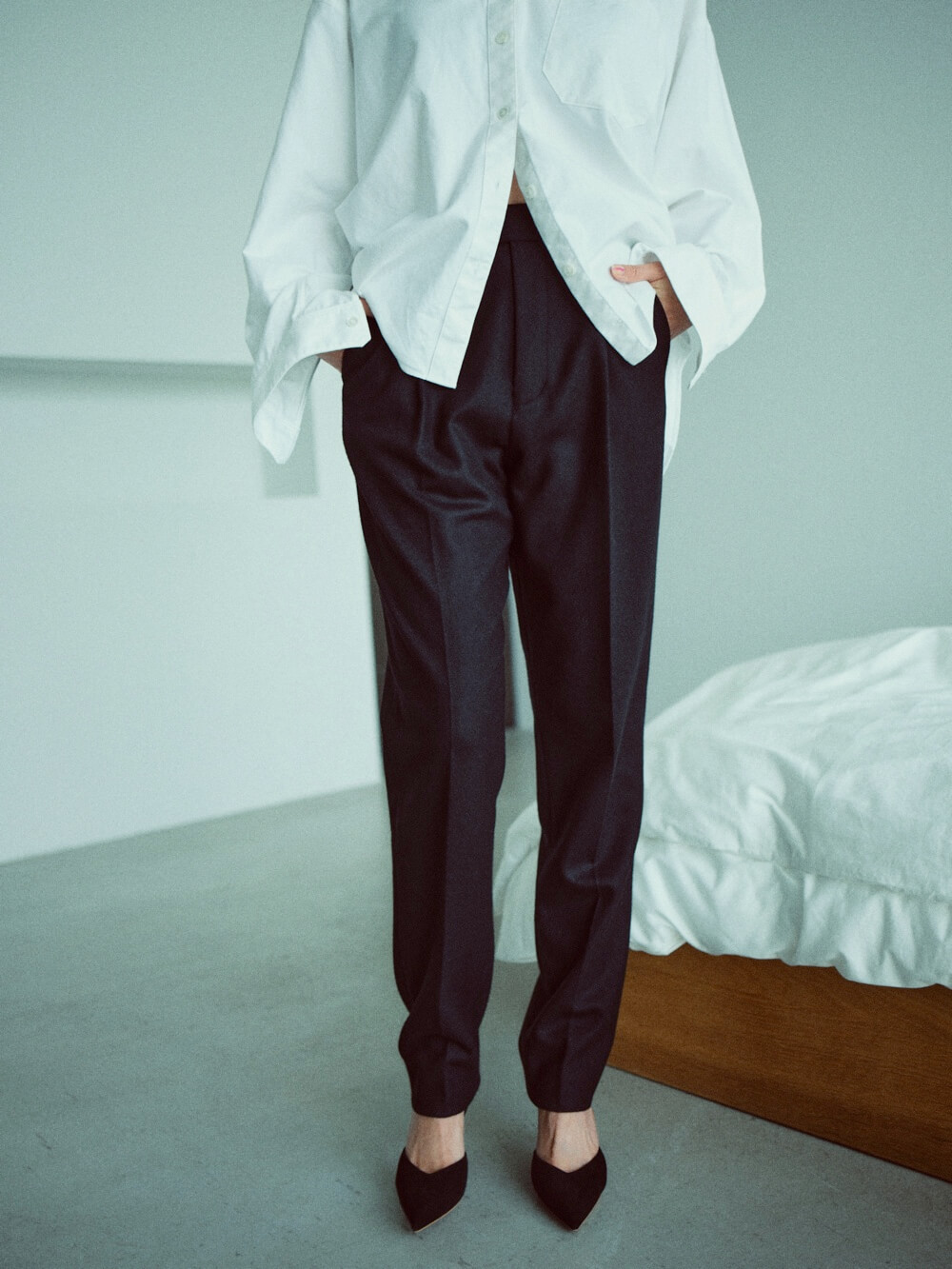 私たちがこだわり続けてきたアイテム・トラウザーズ。そんなブランドの経験値を結集させ作り上げたのが、このLOHMAN PANTです。生地は上質なストレッチフランネル。脚を長く美しく見せるシルエットにとことんこだわり、ただ履くだけで様になります。オーセンティックだからこそ、着た人を輝かせるアイテムです。